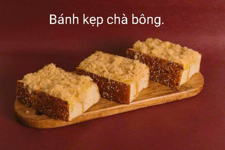 - Mô tả: Bánh mì mềm, thấm bơ, phủ lớp chà bông dày, có thể thêm tương ớt hoặc phô mai.